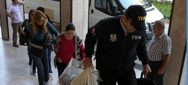 PKK terör örgütünün şehir yapılanması KCK’ya yönelik operasyonlarda gözaltına alınarak mahkemeye sevk edilen 53 kişiden 49’u tutuklandı. İSTANBUL- KCK operasyonunda gözaltına alınan 56 kişinin İstanbul Terörle Mücadele Şube Müdürlüğü’ndeki işlemleri tamamlandı. Şüpheliler, Çevik Kuvvet Şube Müdürlüğü’ne ait 4 araçla sabah saatlerinde Beşiktaş’taki İstanbul Adliyesi’ne getirildi. Aralarında Avukat Gönül Erdem’in de aralarında kadın şüpheliler ayrı bir otobüsten indirildi.