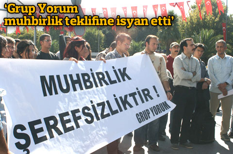 İstanbul Emniyet Müdürlüğü önünde toplanan aralarında Grup Yorum üyelerinin de bulunduğu 30 kişilik grup, Grup Yorum’un üyesi Fatma Doğan’a muhbirlik teklifi yapıldığını iddia ederek polisi protesto etti.