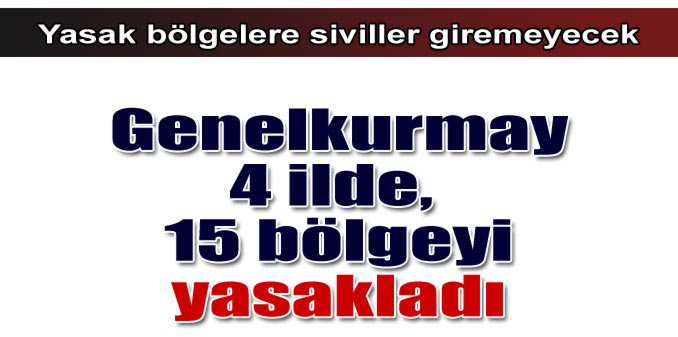 GENELKURMAY Başkanlığı, Diyarbakır, Şırnak, Siirt ve Hakkari’de, 3 Ekim ile 3 Ocak tarihleri arasında 15 bölgeyi geçici güvenlik bölgesi ilan ederek, buralara sivillerin girişinin yasaklandığını açıkladı.