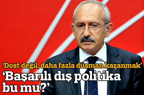CHP Genel Başkanı Kemal Kılıçdaroğlu, “İran ve Suriye İsrail’e düşmandı. Şimdi İran, Suriye ve İsrail, Türkiye’ye düşman. Başarılı dış politika bu mu” ifadelerini kullandı. CHP Basın Birimi’nden yapılan açıklamaya göre, Kılıçdaroğlu, Twitter’deki hesabından hükemetin dış politikasını eleştirdi. Kılıçdaroğlu, şunları kaydetti: “İran ve Suriye İsrail’e düşmandı. Şimdi İran, Suriye ve İsrail, Türkiye’ye düşman. Başarılı dış politika bu mu? Dost değil, daha fazla düşman kazanmak mı?”