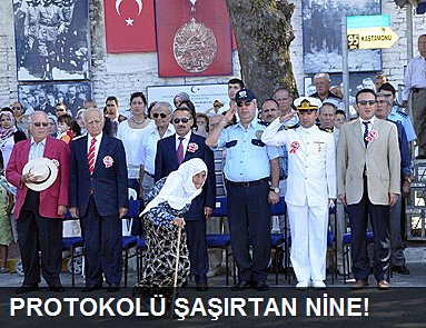 Kastamonu’nun İnebolu ilçesinde, ulu önder Mustafa Kemal Atatürk’ün kentte gelip şapkayı tanıttığı ziyaretin 86’ncı yıldönümü, törenle kutlandı. Tören programının başında İstiklal Marşı okunurken yaşlı bir kadının, ağır adımlarla protokolün önünde yürümesi, ilginç bir görüntü ortaya çıkardı.