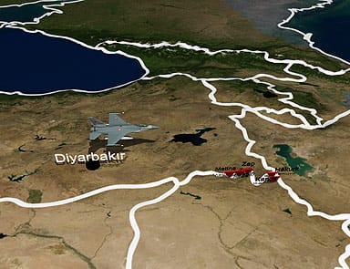 Diyarbakır 2. Hava Kuvvet Komutanlığı 8. Ana Jjet Üssü’nden kalkan savaş uçakların Irak topraklarına girerek PKK kamplarını bombaladığı iddia edildi. Türk Silahlı Kuvvetlerinin dün PKK’nın Kuzey Irak’taki kamplarına yönelik başlattığı hava saldırısının ardından bugün akşam saatlerinde de Diyarbakır 2’inci Hava Kuvvet Komutanlığı 8’inci Ana Jet Üssün’den kalkan F-16 savaş uçaklarının yeniden PKK’nın başta Kandil başta olmak üzere Kuzey Irak’taki kamplarını bombaladığı belirtildi.