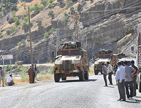 Hakkari’de askeri konvoyun geçişi sırasında PKK’nın önceden yola koyduğu bombanın patlamaların biri korucu 10 güvenlik görevilisi şehit oldu. HAKKARİ – Çukurca’da askeri konvoyun geçişi sırasında yola döşedikleri mayını infilak ettiren PKK, bölgeye sevk edilen askerleri pusuya düşürdü. Askerlerin kullandığı “BTR” adlı zırhlı aracın geçisi sırasında PKK’nın döşediği mayın patladı. Mayının zırhlı araçları etkisiz hale getirmek için kullanılan mayının içinde C-4 türü patlayıcı maddenin de bulunduğu yaklaşık 5 ayrı noktoda 100 kilogramlık anti tank mayını olduğu öğrenildi. Daha sonra askerlere roketatarlarla saldırıldı.