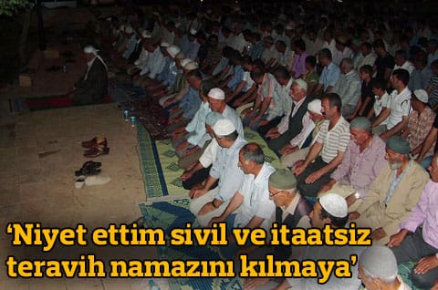 DTK ve BDP’nin sürdürdüğü ‘sivil itaatsizlik eylemleri’ kapsamında cuma namazlarının açık alanlarda kılınması eylemi sürürken; Mardin’in Nusaybin İlçesi’nde eylem kapsamında bir grup dün gece teravih namazını da cami yerine meydanda kıldı. NUSAYBİN – BDP ve Demokratik Toplum Kongresi’nin (DTK) sivil itaatsizlik eylemleri kapsamında cuma namazlarının Doğu ve Güneydoğu’nun bazı illerinde fahri imamlar eşliğinde meydanlarda kılınması eylemi sürerken, buna şimdi de teravih namazı eklendi.