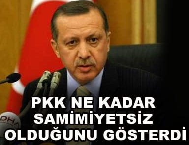 Başbakan Recep Tayyip Erdoğan, Diyarbakır’da terör örgütü PKK’nın şehit ettiği 13 askerle ilgili olarak, “PKK ne kadar samimiyetsiz olduğunu gösterdi. Güvenlik güçlerimiz bunun bedelini çok daha ağır ödettirecektir” dedi. Cumhurbaşkanı Gül de, “Tehditlere asla boyun eğmeyeceğiz” dedi.