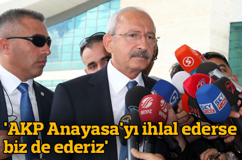 CHP Genel Başkanı Kemal Kılıçdaroğlu, ”Muhalefet ister gelsin ister gelmesin Meclis çalışır” diyen Başbakan Erdoğan’a ‘AKP Anayasa’yı ihlal ederse biz de ederiz’ yanıtını verdi. CHP Genel Başkanı Kemal Kılıçdaroğlu, tutuklu vekiller konusunda Başbakan Erdoğan’ın ”Başbakan hakimleri arayıp talimat mı versin” sözleri üzerine ”Başbakan’ın sözlerini yadırgadım. Biz Başbakan’dan öyle bir talepte bulunmadık” yanıtını verdi.