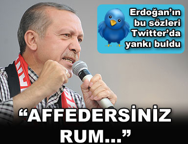 Başbakan Erdoğan’ın dün akşamki, “Ne Yahudiliğimiz ne Ermeniliğimiz ne affedersiniz Rumluğumuz kalmadı” sözleri Twitter’da tartışma konusu oldu. Başbakan Erdoğan, NTV’de katıldığı “Seçime Doğru” programında yöneltilen soruları yanıtladı.