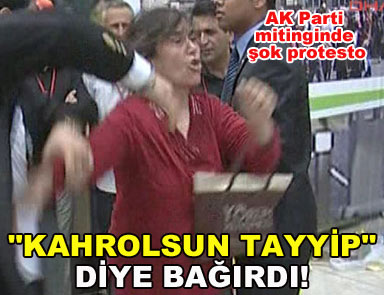 Başbakan Erdoğan konuşurken kalabalığın içinde “Kahrolsun Tayyip” diye bağırdığı öğrenilen bir kadın partililerin tepkisini gördü. Polis tarafından öfkeli kalabalığın elinden alınan kadın gözaltına alındı. Yeni Ümraniye Meydanı’nda parti otobüsünden halka seslenen Erdoğan, Türkiye’de 163 bin derslik yaptıklarını belirterek, öğrencilere kitapları ücretsiz verdiklerini anlattı.