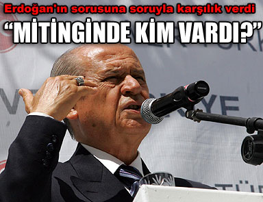 12 Haziran’a 15 gün kala liderler şehir şehir gezmeye devam ediyor. MHP lideri Devlet Bahçeli Düzce ve Sakarya’da iki ayrı miting yaptı. Gündeminde CHP’nin Hakkari mitingiyle başlayan ‘ittifak’ tartışması vardı. Başbakan Recep Tayyip Erdoğan’ın “Neden CHP-BDP ittifakına çıtını çıkarmıyorsun” sorusuna soruyla karşılık verdi: “Senin mitinginde kim vardı?”