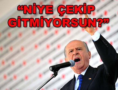 MHP Genel Başkanı Devlet Bahçeli, “Sayın Başbakan niye ısrar ediyorsun? Niye çekip gitmiyorsun? Suriye’ye, Libya’ya ‘Çekilin’ demeyi biliyorsun da onun eşiğine getirdiğin Türkiye’de o felaketler yaşanmadan niye sen çekip gitmiyorsun?” dedi.