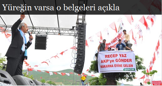 CHP lideri Kılıçdaroğlu’nu hemşehrileri “Dersim seninle gurur duyuyor” diye alkışladı. Kılıçdaroğlu da “Desimliyim, gururluyum” karşılığını verdi. Kılıçdaroğlu, Başbakan Erdoğan’a da seslenerek “Yüreğin varsa Dersim Belgelerini açıkla. Açıklamazsan 13 Haziran’da ben açıklayacağım” dedi.
