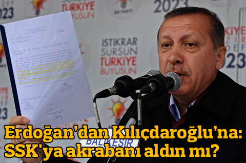 13 yıl önceki bir belgeyi açıklayan Başbakan Erdoğan, CHP lideri Kemal Kılıçdaroğlu’na sordu: SSK’ya kimleri atadınız? Atananlar kimler? Sizinle akrabalıkları var mı?