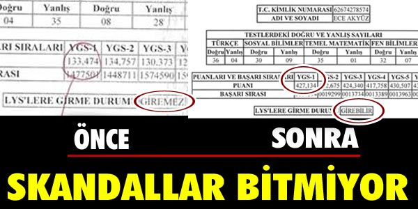Bursa’dan sınava giren Ece Akyüz adlı öğrencinin sonuç formunda puanı 133 yazıyordu ve LYS’ye bile giremiyordu. Bir gün sonra ÖSYM ile görüşüldü ve yeni bir form alındı. Bu kez puan 427’ydi.