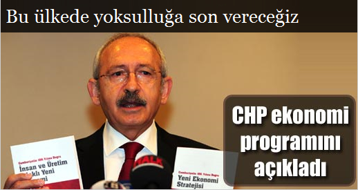 CHP Genel Başkanı Kemal Kılıçdaroğlu, konuşmasının başında partisinin ekonomi programı hakkında da bilgi verdi. CHP’nin ekonomi programında temel dayanaklarının sosyal devlet, uluslararası rekabet gücü ve kalıcı istikrar olduğunu açıklayan Kılıçdaroğlu, konuyla ilgili kapsamlı açıklamanın daha sonra yapılacağını duyurdu.