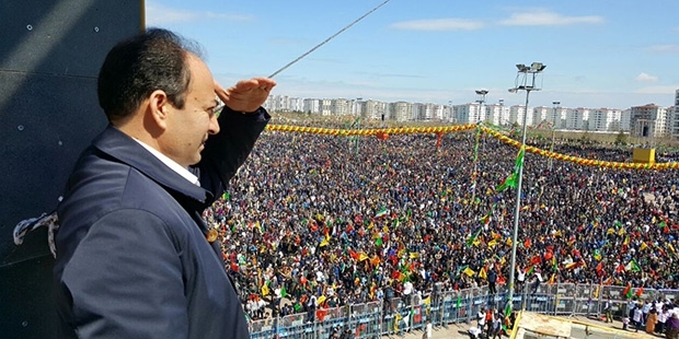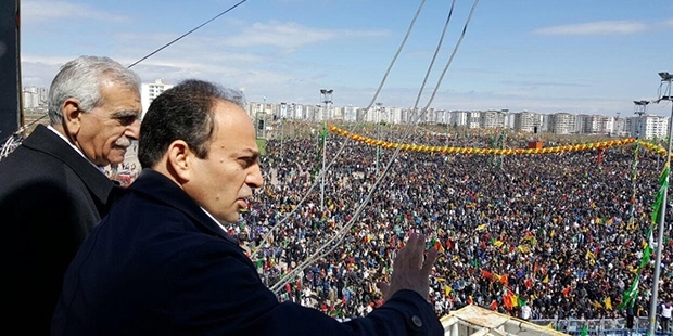 “Sayın Öcalan’ın 2013 Newrozu’nda ortaya koyduğu düşünceler çevresinde, barış ve diyalog ortamını yeniden sağlayalım” Diyarbakır’da düzenlenen Newroz kutlamalarında konuşan eski Mardin Büyükşehir Belediyesi Eş Başkanı Ahmet Türk, 16 Nisan’da anayasa değişikliğine ilişkin yapılacak halk oylamasıyla ilgili olarak “Bugün eş genel başkanlarımız zindanda. Bu zindan siyasetini yürütenlere ‘Evet’ mi diyeceğiz? Elbette ki ‘Hayır’ diyeceğiz” ifadesini kullandı.