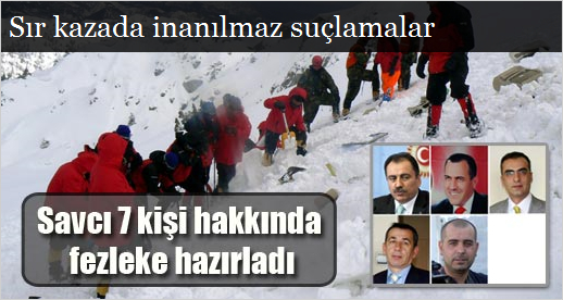Eski BBP Genel Başkanı Muhsin Yazıcıoğlu ile 5 kişinin hayatını kaybettiği helikopter kazasıyla ilgili hazırlanan fezlekede, ”birden fazla kişiyi öldürme” iddiasıyla 7 kişi hakkında suçlamalara yer verildi. Fezlekede NTV çalışanı Mirgün Cabas ve Mustafa Hoş’un da aralarında bulunduğu 7 kişiye ilginç suçlamalar yöneltiliyor.