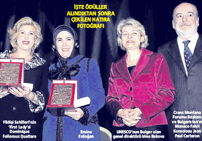 Başbakan Erdoğan’ın eşi Emine Hanım’a, adını İsviçre’deki ünlü kayak merkezinden alan Crans Montana Forumu barış, özgürlük ve demokrasiye yaptığı katkılardan ötürü ‘2011 Vakıf Ödülü’nü vermişti. Ödül 16 Şubat’ta Belçika’nın başkenti Brüksel’de forumun kurucusu ve başkanı Avukat Jean Paul Carteron tarafından Emine Hanım’a sunulmuştu.