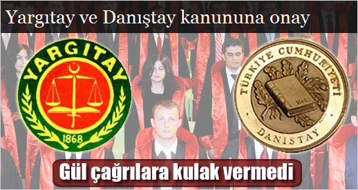 Cumhurbaşkanı Abdullah Gül, Yargıtay ve Danıştay kanununun onaylamasıyla ilgili ”Neticede hukuk büromdaki danışmanlarımın bana verdikleri bilgi ve öneri çerçevesinde yayınlanmasında herhangi bir sakınca, problem olmadığını gördüm” dedi.