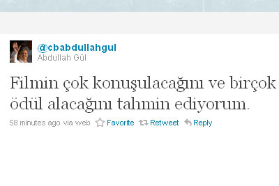 Gül, ‘cbabdullahgul’ ismiyle bu akşamüzeri twitter’dan üç konu üzerine yorum yaptı. İran’a bir iadei ziyarette bulunacağını ve yeni sağlık düzenlemeleriyle ilgili Sağlık Bakanı’yla görüşeceğini söyleyen Cumhurbaşkanı, eşiyle birlikte bir film izlediklerini ve filmin gerçekten güzel bir film olduğunu da yazdı.