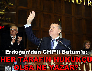 Başbakan Recep Tayyip Erdoğan, KKTC’de son dönemde gelişen Türkiye karşıtı eylemlerle ilgili olarak, “Olay Rumların ekmeğine yağ sürmüştür” dedi. Erdoğan bu konuda yaptığı açıklamaları eleştiren muhalefete de sert çıktı; “Hiçkimse KKTC üzerinden istismar yapmasın” diye konuştu. Başbakan TSK ile ilgili sözleri tartışma yaratan CHP’li Süheyl Batum için de “Her tarafı anayasa hukukçusu olsa ne yazar?” dedi, savcıları göreve çağırdı.