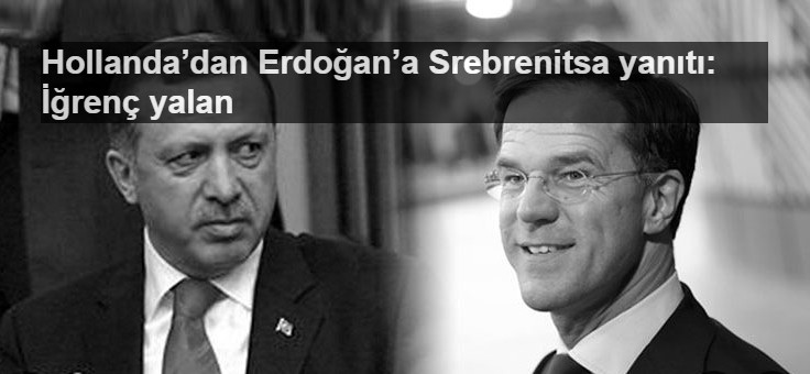 Hollanda Başbakanı Mark Rutte, Cumhurbaşkanı Tayyip Erdoğan’ın “Biz Hollanda’yı ve Hollandalıları Srebrenitsa katliamından tanırız” demesini ‘iğrenç yalan’ diye niteledi. Erdoğan, “Biz Hollanda’yı ve Hollandalıları Srebrenitsa katliamından tanırız. Onların cibiliyetinin, karakterinin ne kadar bozuk olduğunu orada katlettikleri insan sayısından tanırız. Savaşın bile bir ahlakı, bir kuralı vardır. Savaşta bile sağlık ekiplerine ateş açılmaz. He Hollandalı gibi olursa açar, onu söyleyeyim” demişti.