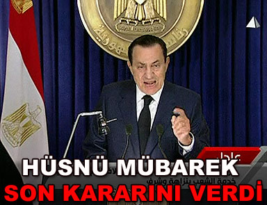 Mısır Cumhurbaşkanı Hüsnü Mübarek, eylüldeki cumhurbaşkanlığı seçiminde yeniden aday olmaya niyetli olmadığını söyledi. İktidarının bundan sonraki birkaç ayını barışçıl bir iktidar değişikliğine ayıracağını ifade eden Mübarek, “Mısır’da ölmeyi tercih ettiğini” söyledi. Mübarek’in konuşmasını dinleyen protestocular ise tatmin olmadı, “cuma günü sarayda olacağız” sloganları attı.