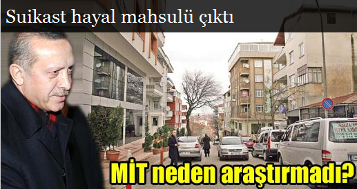 MİT’in yazısıyla gündeme gelen Başbakan’a suikast iddialarının tamamı hayali çıktı. Belgedeki gibi ne suikast için tutulmuş bir ev ne de ekip var. Başbakan Tayyip Erdoğan’a suikast hazırlığı ile ilgili MİT’in hazırladığı ve Başbakanlığa gönderdiği ‘bilgi notu’nda geçen hemen her şey hayali çıktı. Ne İstanbul Kısıklı’da kiralanmış bir ev var, ne Bulgaristan’da yaşayan emekli bir albay, ne de eylemin finansörü olduğu söylenen ve İstanbul Maslak’ta işyeri bulunan 40-45 yaşlarında Selahattin Beyazıt diye bir şahıs! Yarım bodrum şeklindeki evin caddeye bakan kısmından da iki tuğla çıkmamış. İddia da gerçek olan ise sadece ihbar notu.