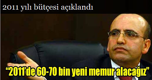 Maliye Bakanı Mehmet Şimşek, 2011 yılında ortalama devlet memuru aylığında yüzde 13,7 oranında artış yapılmış olacağını belirtti, Maliye Bakanı Mehmet Şimşek, 2011 yılı merkezi yönetim bütçesinin 312,5 milyar lira büyüklüğe sahip olduğunu açıkladı.