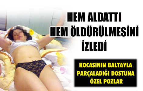 14 yıllık eşini arkadaşıyla aynı yatakta gören koca, arkadaşını baltayla öldürdü SAMSUN’da ilişki yaşadığı 3 çocuk babası 44 yaşındaki Sebahattin Yener’in, kendilerini yatakta yakalayan eşi tarafından baltayla öldürülmesini seyreden 2 çocuk annesi Reyha Payaz’ın iç çamaşırı ile verdiği erotik pozları ortaya çıktı. Ağırlaştırılmış müebbet hapis cezası istemiyle tutuklu yargılanan Payaz çiftinin evinde, soba bacasına gizlenmiş halde bulunan cep telefonuna ait hafıza kartlarında yer alan görüntülerin öldürülen Yener tarafından çekildiği belirtildi. Reyha Payaz ifadesinde, eşini aldattığını kabul etti. Ancak cinayetle ilişkisi olmadığını ileri sürdü.