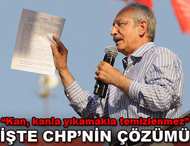 CHP Genel Başkanı Kemal Kılıçdaroğlu, 35 yıldır devam eden terörü ancak CHP’nin bitirebileceğini belirterek, “35 yıldır terörü silahla susturmaya çalıştılar. Akıl yok, mantık yok bunlarda. Kan, kanla yıkamakla temizlenmez, böyle bir anlayış olmaz. Huzuru ve barışı sağlamak için, toplumsal barışı sağlamak için önce aklımızı ve mantığımızı kullanacağız. Biz birilerinin reçetesine değil halkın reçetesine başvuracağız” dedi.