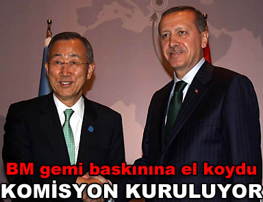 Başbakan Recep Tayyip Erdoğan, İsrail’in müdahalesiyle ilgili olarak BM Genel Sekreteri Ban Ki-Moon ile telefonla görüştü. Ban Ki-Moon nezaretinde 5 kişilik bir araştırma komisyonu kurulacak. Komisyonun başkanlığını Yeni Zelanda eski başbakanının yapması düşünülüyor. İsrail ve Türkiye’den birer üyenin yer alacağı komisyona, Ban Ki-Moon tarafından da 2 üye atanacağı bildirildi.
