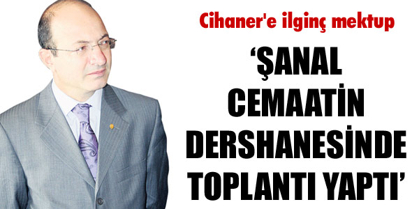 ‘Şanal cemaatin dershanesinde toplantı yaptı’ ANKARA – Erzincan’da Ergenekon’a üye olduğu ve İrtica ile Mücadele Eylem Planı’nı uygulamaya koyduğu iddiasıyla yargılanan Erzincan Başsavcısı İlhan Cihaner’e gönderilen bir mektupta çarpıcı iddialarda bulunuldu. Bir cezaevinden açık ismini vererek gönderdiği mektupta ’silahlı yağma’suçundan tutuklu mahkum şu iddialarda bulundu: