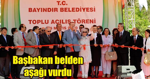 Başbakan Recep Tayyip Erdoğan, İzmir’in Bayındır ilçesinde Deniz Baykal’a yönelik eleştirilerine devam etti. Erdoğan “Sayın Genel Başkanın Parlamentoya gelip gittiği yok. Biz orada Anayasayla uğraşırken, Sayın Başkan başka yerlerdeydi” dedi.