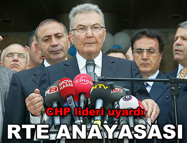 CHP Genel Başkanı Deniz Baykal İstanbul’da… Gündemi yine Anayasa değişikliği. Baykal’a göre, AK Parti “Recep Tayyip Erdoğan Anayasası” yapmaya çalışıyor. CHP lideri, AK Parti’nin fire verdiğini de iddia etti ve “Bu yanlıştan bir an önce vazgeçin” dedi.