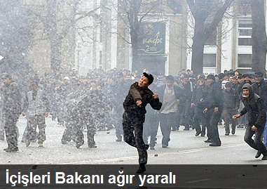 Kırgızistan’da Devlet Başkanı Bakiyev’in istifasını isteyen muhalefet yanlıları sokaklarda. Talas kentinden sonra bugün başkent Bişkek ve Narın kentinde de toplanan muhalefet yanlılarına, polis müdahale ediyor. Kırgız TV binasının göstericilerin eline geçtiği bildirildi. Talas kentinde rehin alınan ve dövülen İçişleri Bakanı Moldomusa Kongantiyev’in öldürüldüğü ileri sürüldü. Ancak daha sonra gelen haberlerde bakanın ağır yaralı olduğu belirtildi. Ülkede olağanüstü hal ilan edildi. Devlet Başkanı’nın nerede olduğu ise bilinmiyor.