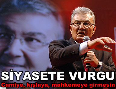 CHP lideri Deniz Baykal, “Siyasetle kışla ayrılmalı” dedi. Partisinin Erzurum İl Kongresi’nde konuşan Deniz Baykal, “Eğer siyasetle ordu ilişkisi çığrından çıkarsa, Balkan Savaşı’nda başımıza gelenler olur” dedi. Baykal, siyasetin cami ve kışlanın yanı sıra, mahkemeye de girmemesi gerektiğini savundu.