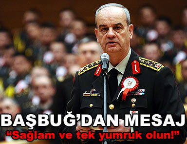 Atatürk’ün Harbiye’ye girişinin 111. yıldönümü töreninde konuşan Genelkurmay Başkanı Orgeneral İlker Başbuğ, Harbiyelilere önemli mesajlar verdi. Geçen yıllara göre daha uzun bir teşekkür konuşması yapan Başbuğ, Atatürk’ün 1 Kasım 1920’deki Harbiye’de yaptığı konuşmaya atıfta bulundu. Harbiyelilere “Gelecekte bizlerin yerini alacaksınız, bizlere göre daha karmaşık ortamlarda görev yapacaksınız” diyen Başbuğ, “Sağlam ve tek yumruk olun” mesajı verdi.