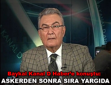 CHP Genel Başkanı Deniz Baykal, anayasa değişikliğinin içeriği soruşturulmadan gündeme getirilecek bir konu olmadığını belirterek, “Bunlar, askeri yıldırmaya ve susturmaya çalıştılar. Şimdi sıra yargıya geldi” dedi. Baykal, Kanal D Haber Bülteni’ne katılarak, gündeme ilişkin sorularını yanıtladı.