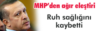 Başbakan Erdoğan’ın, “Yargının kuşatması altına girdik” sözlerine MHP’den tepki geldi. MHP Grup Başkanvekili Mehmet Şandır, Başbakan Erdoğan’ın, “Yargının kuşatması altına girdik” sözlerini, “Herkes, hukuk kuşatması altında olması gerekirken, Sayın Başbakanın sözlerini talihsizlik olarak görüyorum. Başbakan ruh sağlığını kaybetti” şeklinde değerlendirdi.