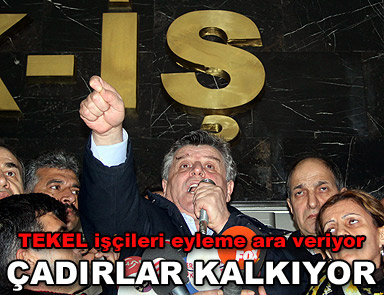 Tek Gıda-İş Sendikası Başkanı Mustafa Türkel, “Bugün saat 13.00’te TEKEL işçilerinin çadırlarını kaldırıyoruz. Eyleme 15-20 günlük mola vereceğiz” dedi. “Bu mücadele burada bitmedi” diyen Türkel, saat 13.00 itibariyla çadırları kaldıracaklarını, saat 15.00’te de başından beri kendilerine destek olan civardaki esnafı ziyaret edeceklerini söyledi.