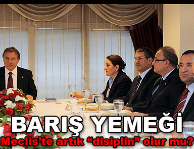Meclis’teki kavganın ardından, TBMM Başkanı Mehmet Ali Şahin’in bugün düzenlediği barış yemeğine CHP’liler katılmadı. Şahin, olaylı Meclis oturumunu yöneten CHP’li Meclis Başkanvekili Güldal Mumcu’nun mazeret bildirmeden yemeğe katılmadığını belirtti. Meclis Başkanı, başkanvekillerinin özellikle disiplin kurallarını daha titizlikle uygulayacaklarının da altını çizdi.