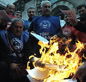 Türkiye Kamu-Sen Genel Başkanı Bircan Akyıldız, “zam, vergi ve katkı paylarının memurların üzerine kabus gibi çöktüğünü, maaş bordrolarına baktıklarında ise görünen manzaranın çok daha korkunç olduğunu” söyledi. Kamu-Sen üyeleri, Maliye Bakanı Mehmet Şimşek 2009 yılı bütçe rakamlarını değerlendirdiği sırada, bakanlık önünde yılın ilk maaşlarına ait bordrolarını yaktı.