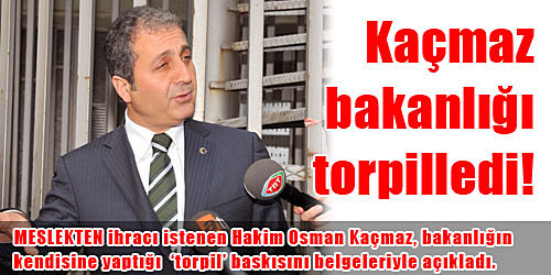 Meslekten ihracı istenen Hakim Osman Kaçmaz, bakanlığın kendisine yaptığı ‘torpil’ baskısını belgeleriyle açıkladı. Bakanlığı torpil listesiyle vurdu Kaçmaz’ın, HSYK’ya sunduğu belgeler arasında Adalet Bakanlığı’nın zabıt katipliği sınavında başarılı olmalarını istediği kişilerin isim listesi yer alıyor.