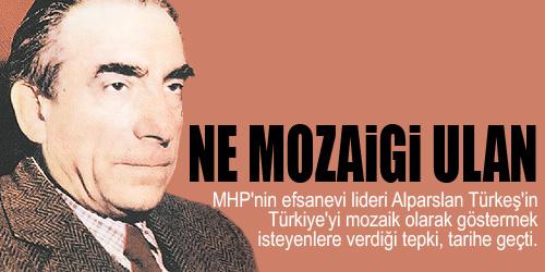 PKK açılımına karşı çıkan Türk milliyetçilerinin direncini kırmak için sık sık Alparslan Türkeş’e atıfta bulunan AKP’liler, Başbuğ’un, “Türkiye mozaiktir” diyenlere verdiği tarihi cevabı görmezden geliyor. Başbakan Erdoğan’ın önceki gün, “Merhum Türkeş’in hoşgörülü, yapıcı, birleştirici tutumu, bugünkü mirasçılarından fersah fersah ileridedir” demesi, bu sözü yeniden gündeme taşıdı.