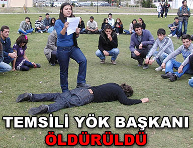 Bolu’da, Abant İzzet Baysal Üniversitesi’nde Yüksek Öğretim Kurulu’nun (YÖK) kuruluşunu protesto eden öğrenciler, YÖK Başkanı Prof. Dr. Yusuf Ziya Özcan rolünü oynayan öğrenciyi temsilen döve döve öldürdü. Üniversitenin Gölköy kampusunda Eğitim Fakültesi önünde toplanan yaklaşık 50 öğrenci, “Üniversitelerimizi AKP’ye ve YÖK’e teslim etmeyeceğiz” yazılı pankart açıp, “Üniversiteler bizimdir bizim olacak”, “AKP üniversiteden defol” sloganları atarak yürüyüş yaptı.