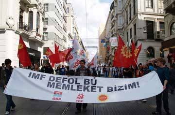 Dünya finansının patronları geliyor. Emek ve demokrasi güçleri de IMF ve Dünya Bankası’nı İstanbul ve Ankara’da öfkeli protestolarla karşılamaya hazırlanıyor. Protestolar Artacak Dünyanın yoksul halklarının daha yoksullaşması, gelişmiş ülkelerin daha zenginleşmesi için kurulan büyük kumpasın mimarlarından Uluslararası Para Fonu (IMF) ile Dünya Bankası 6-7 Ekim’de İstanbul’da. Zengin dostu yoksul düşmanı Başbakan Erdoğan da IMF ve Dünya Bankası patronlarının önüne kırmızı halılar sermek için el pençe divan bekliyor. Ancak emek ve demokrasi güçleri düzenleyecekleri bir dizi protesto eylemiyle Türkiye’nin IMF ile Dünya Bankası’na peşkeş çekilmesine dur diyecek.
