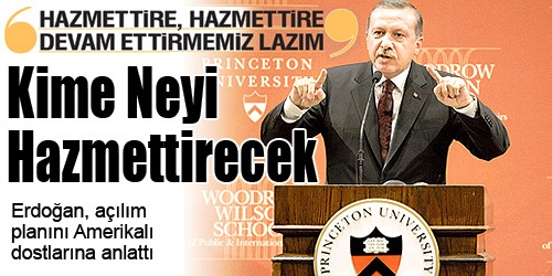 Erdoğan, açılım planını Amerikalı dostlarına anlattı NEW JERSEY’deki Princeton Üniversitesi’nde soruları cevaplayan Başbakan, Kürt açılımındaki hesabını şöyle açıkladı: Kısa, orta ve uzun vadeli olarak bütün bu açılım sürecini çalıştırmayı hedefliyoruz. Hazmettire hazmettire bu süreci devam ettirmemiz lazım. Feveran edenler vardı… BAŞBAKAN Erdoğan, ABD’li dostlarıyla sohbetine şöyle devam etti: TRT-6’yı tamamen Kürtçe yayına ayırdık. Önce feveran edenler vardı, şimdi iletişim daha rahat oldu. Bilboardlara Kürtçe de konuluyor.