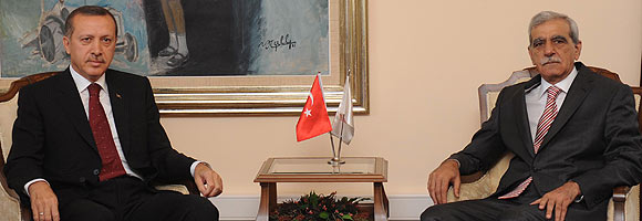 Başbakan Recep Tayyip Erdoğan ve DTP lideri Ahmet Türk, hükümetin Kürt açılımı çerçevesinde 1 saat boyunca görüştü. Erdoğan, görüşmeyi “genel başkan” sıfatıyla yaptı. Görüşmede Abdullah Öcalan’ın isminin gündeme gelmediği öğrenildi. Görüşmenin ardından bir açıklama yapan Başbakan Erdoğan, “Bugün gerçekten demokratik parlamenter sistem içerisinde TBMM çatısı altında çok çok önemli bir toplantıyı gerçekleştirmiş bulunuyoruz. Bugün yapmış olduğumuz toplantıyla geleceğe yönelik umutlarımızın daha da arttığı inancındayım. Zira, milletimiz, birlik istiyor, beraberlik istiyor, dayanışma istiyor. Tabii anneler gözyaşları dinsin istiyor. Kan, ölüm olmasın istiyor. Hepimiz bunu istiyoruz. Hepimiz bunun beklentisi içindeyiz” dedi.