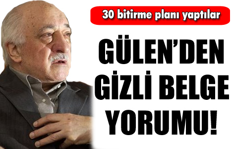 Genelkurmay’ca hazırlandığı iddia edilen ve Taraf gazetesinin “AKP ve Gülen’i bitirme planı” başlığıyla yayınlanan raporla ilgili açıklama yapan Fethullah Gülen, “bugüne kadar kendisini bitirmeye yönelik belki 30 plan yapıldığını” ileri sürdü. www.herkul.org isimli internet sitesinde soruları yanıtlayan Gülen, “Bazı kesimler tarafından, ’bitirme’mülahazasına matuf olarak açık ya da kapalı belki otuz tane plan yapıldı. Aslında, bunların hepsi ’yok’u bitirme hareketiydi. Ülkemizin menfaatlerine ve milletimizin istikbaline ters ne vardı ki, ona yönelik bitirme planı yapılsın. Gerçek yolunu bulmuş bir insan için bu türlü entrikalar tereddüte sevk edici ve vazgeçirici olamaz” dedi.