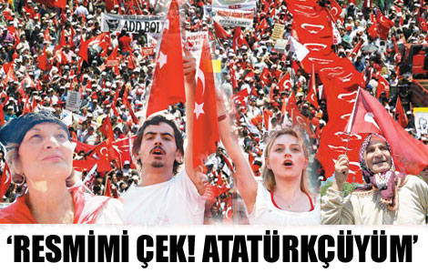 Atatürkçü Düşünce Derneği (ADD) tarafından başta Ergenekon Soruşturması’na duyulan tepki nedeniyle başlatılan Cumhuriyet Mitingi sona erdi. Bazı yayın organlarının “katılanlar fişlenecek” iddiasına rağmen ADD’nin Ankara Tandoğan Meydanı’nda düzenlediği ’Cumhuriyet mitingi’ne onbinlerce kişi katıldı. Kalabalık “Tayyip baksana kaç kişiyiz saysana“ sloganıyla Anıtkabir’e yürüdü Atatürkçü Düşünce Derneği öncülüğünde bazı sivil toplum örgütlerinin desteklediği ”Sosyal hukuk devletimize, demokratik laik cumhuriyetimize, üniter yapımıza ve tam bağımsızlığımıza sahip çıkalım“ mesajıyla yapılan ”Cumhuriyet Mitingi“ Tandoğan Meydanı’nda gerçekleştirildi.